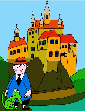Das grüne Hündchen Dixi und sein Herrchen laden zum Besuch in Dixis Welt ein.